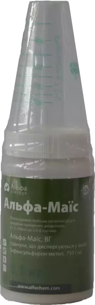 Альфа-Маїс зупиняє поділ клітин бур’янів шляхом впливу на їх ферментну систему. Пригнічує фермент АЛС (ацетолактатсинтетазу) та зупиняє ріст бур’янів через кілька годин після внесення. У чутливих бур’янів викликає припинення росту, хлороз, відмирання точок росту, некроз та повну загибель. Більш стійкі бур’яни або ті, що перебувають у більш пізній стадії розвитку на момент обробки, можуть призупинити свій ріст у період вегетації, але конкуренції культурним рослинам вони вже не становлять. Діє в основному через листову поверхню рослин. Видимі симптоми з’являються через 3-7 днів після застосування. Загибель чутливих бур’янів може тривати 10-20 днів.