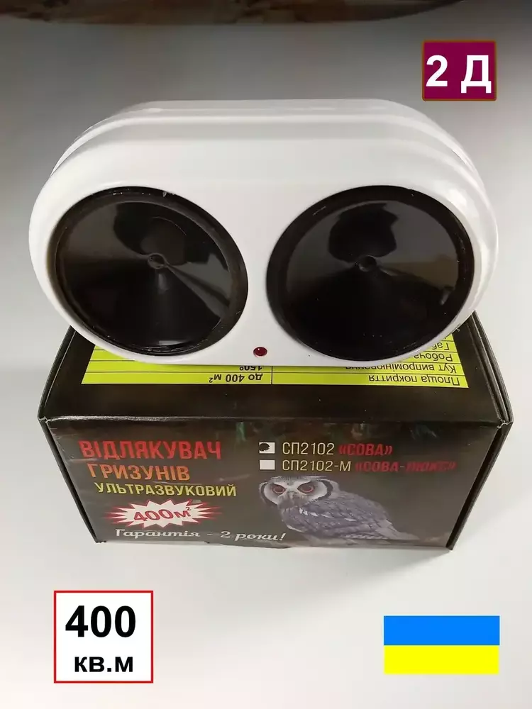 Відлякувачі ультразвукові (на мікропроцесорі) відлякувачів СП2102 "СОВА" и СП2102-М "СОВА-Люкс" предназначены для відлякування мишей, щурів, д. гризунів, кажанів, а також, у ряді випадків — змій і повзальних комах. Може бути встановлений у житлових, допоміжних, службових, складських, виробничих та ін. приміщеннях закритого типу до 400 м2