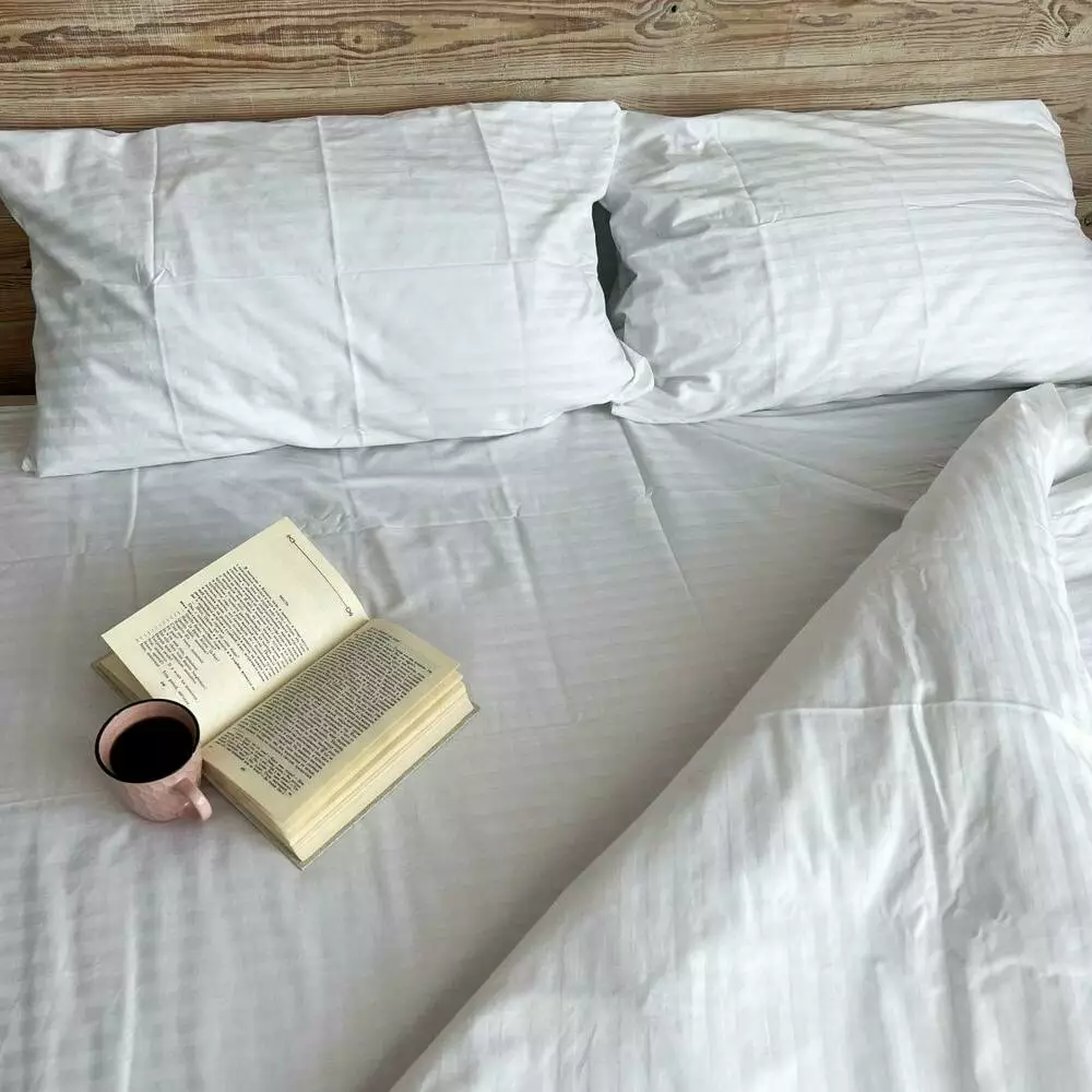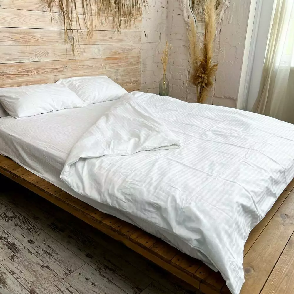 Комплекти постільної білизни полуторний 100% бавовна Білий страйп