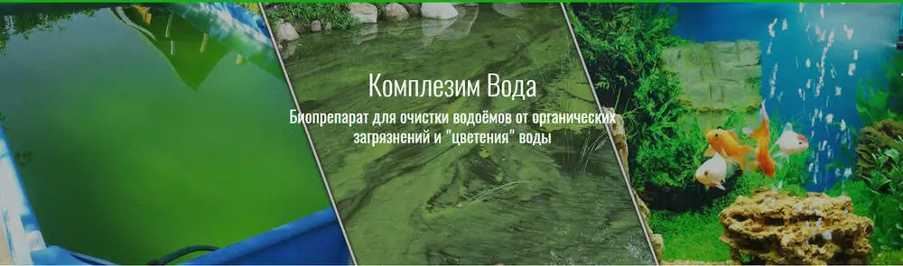 Біодеструктор Комплезім В - біопрепарат для ефективного очищення водойм: озер, ставків, водосховищ, басейнів та акваріумів від забруднень органічного походження, для зменшення вмісту органічних речовин, розчинених у води, різноманітних сполук азоту, за рахунок чого у води зменшується вміст метану, сірководню тощо.