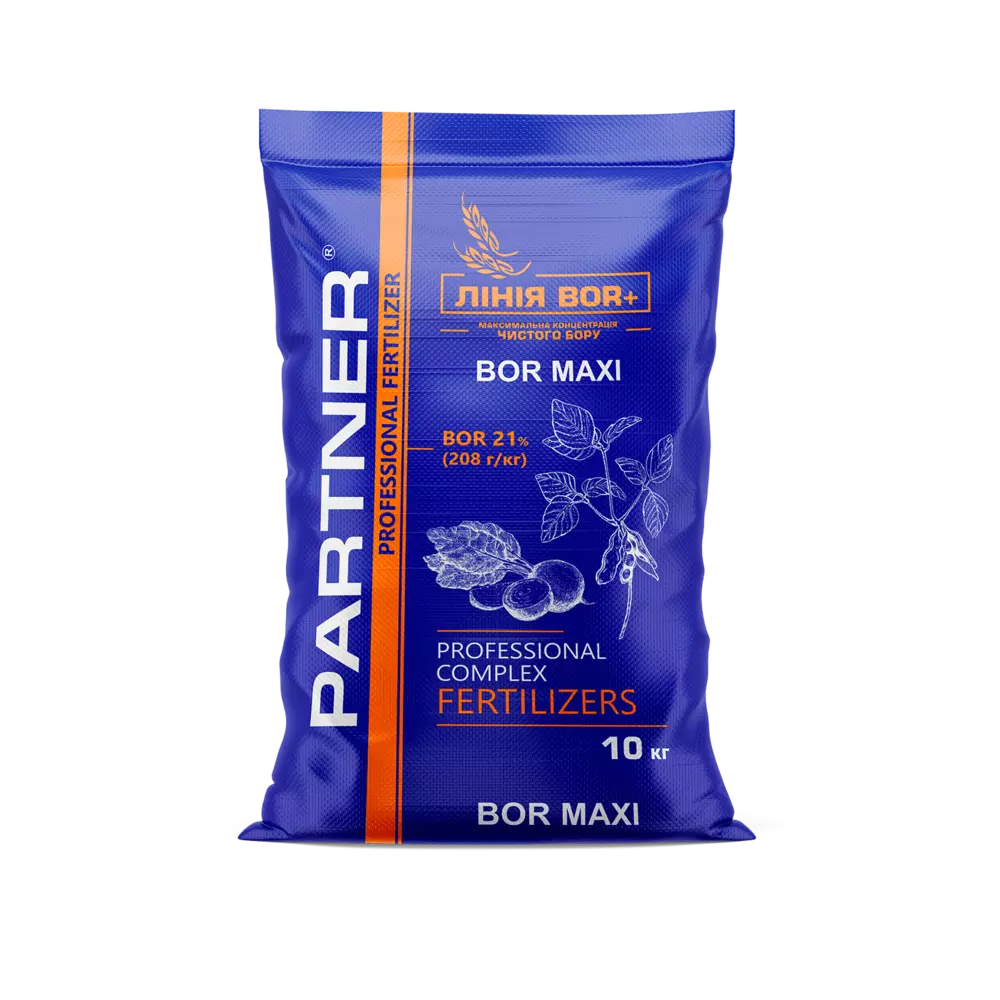 BOR MAXI – це еталонний продукт як по концентрації бору, так і за його якістю. Бор представлений в висококонцентрованій швидкорозчинній формі, що дозволяє працювати з борофільнимі культурами з максимальною ефективністю. Містить у своєму складі 208 /кг бору і 140 г/кг натрію, що дає можливість його застосовувати при інтенсивних технологіях вирощування різних культур.