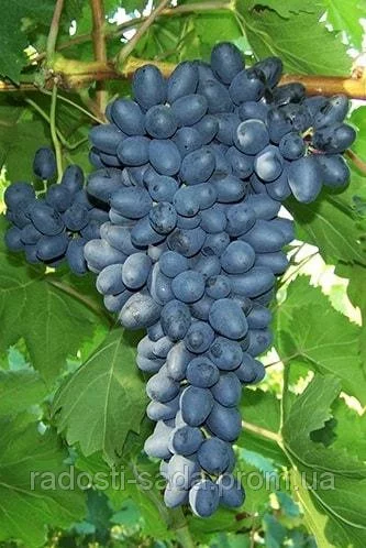 Виноград Европейская гордость – бессемянный кишмишный сорт винограда ранне-среднего срока созревания, селекция Греция. Созревает во второй декаде августа. Продолжительность продукционного периода от распускания почек до полной зрелости ягод составляет 118-120 дней. Кусты большой силы роста. Грозди очень крупные, до 30см длиной, 600-900гр., плотные, ягода крупная, весом 4-5г, овальная или продолговатая 25х19мм, фиолетового цвета. Мякоть плотная, хрустящая, приятного нейтрального вкуса. Урожайность высокая (25 до 30 тонн/га). Виноград хорошо хранится, с небольшой потерей веса, без развития гнили, побурение гребней появляется на второй неделе. Транспортабельность высокая. Морозостойкость до -22°С.
