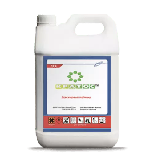 Кратос это почвенный препарат довсходового применения с содержанием такого действующего вещества как ацетохлор.Гербицид Кратос эффективно уничтожает однолетние злаковые и двудольные сорняки в посевах сои, подсолнечника и кукурузы.Действие препарта длится на протяжении 60 дней с момента обработки, но при условии правильного внесения, уровня содержания влаги в почве правильном заделывании в грунт и периода прорастания всходов культуры.Действие агрохимиката начинается сразу после его применения.Ацетохлор проникает в сорняки с почвы в корень и побеги.Ингибируя синтезирование белков сорное растение погибает, и защитное действие наблюдается во время всего периода вегетации культуры.