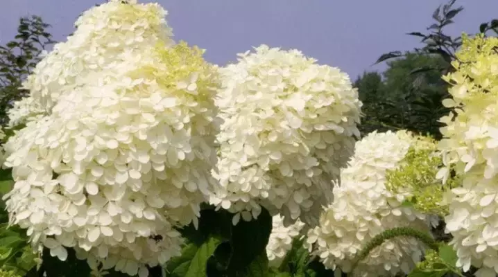 Hydrangea paniculata 'Phantom', Гортензия метельчатая 'Фантом' синонимы, другие названия: Гортензія волотиста 'Phantom', Гортензія мітловидна 'Привид', Голтензія метельчата Фантом, Гортензия метельчатая Призрак Гортензия Фантом - это морозостойкий, лиственный, многолетний и красиво-цветущий кустарник. Отличается Фантом своей высотой, пышным цветением, прочными побегами и широко-пирамидальными соцветиями. Этот сорт гортензии метельчатой имеет большую, раскидистую крону. Устойчива к болезням и хорошо переносит обрезку. Купить укоренившиеся сажанцы в горшке Гортензии метельчатой Фантом вы можете в питомнике Зеленые Ангелы с доставкой по Украине Как выглядит и растет Гортензия метельчатая 'Phantom': Вырастает максимально в высоту гортензия Фантом до 2-2,5 м, а ширину может разрастаться до 1,5-2 м. Форма куста округлая и раскидистая. Крепкие побеги растут вертикально и имеют коричнево-красную окраску. Листья гортнзии Фантом имеет удлиненную, яйцевидную форму с заостренными кончиками. Цвет зеленый. Соцветия метельчатые, конусной формы. Состоит из многих маленьких цветочков бледно-зеленого или белого цвета в начале лета. Ближе к осени соцветия Фантом приобретает розовой окраски. Размером может достигать 30-50см. Гортензия метельчатая 'Phantom' - как сажать и ухаживать: Метельчатая гортензия Фантом лучше всего растет в хорошо дренированных, кислых, увлажненных и плодородных почвах. Любит солнечные места, но хорошо растет и в полу тени. Вообще Фантом не прихотливый, цветущий кустарник и может расти в любых почвах при условии достаточного количества влаги. Для того чтобы ваш куст гортензии Фантом имела плотную крону и красивую форму рекомендуется проводить сезонные стрижки. Стрижку гортензии лучше проводить весной или уже в конце периода цветения. Гортензия метельчатая 'Phantom' - где сажать: . Метельчатые гортензия Фантом хорошо подходит для городского озеленения в скверах, парках, школьных и городских двориках. Очень красиво выглядит Фантом в одиночных посадках, или можно образовывать цветущие живые изгороди. Также хорошо сочетается в композициях с другими хвойными и лиственными растениями. Сорт гортензии Фантом часто используют в контейнерных посадках для озеленения террас и балконов. А еще благодоря своим декоративным качествам гортензию Фантом можно формировать в небольшое цветущее деревце.