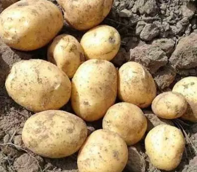 Картофель удлиненно-овальный, кожица гладкая, мелкие глаза.