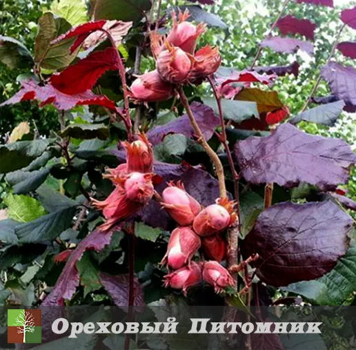 Фундук “Сирена” – разновидность польской селекции. Выделяется изменениями окраски листьев в течение сезона: весной, после распускания, они бордовые, летом – практически зеленые с розовыми прожилками, а осенью – красные с желтым. Обертка орехов также бордовая, немного длиннее самого плода. При полном созревании она раскрывается и орех выпадает. Плоды не средние массой 3 г, собраны в кисти по 3-7 штук. Скорлупа прочная, коричневая с бордовым оттенком. Морозоустойчивость сорта высокая. Из опылителей рядом сажают фундук Ламберта.