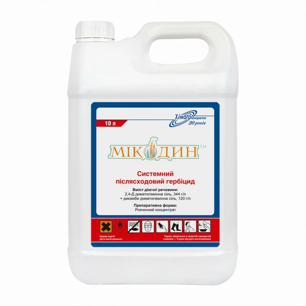 - Микодин — уникальный гербицид, который очищает поле от однолетних и многолетних двудольных сорняков под следующие культуры в севообороте.