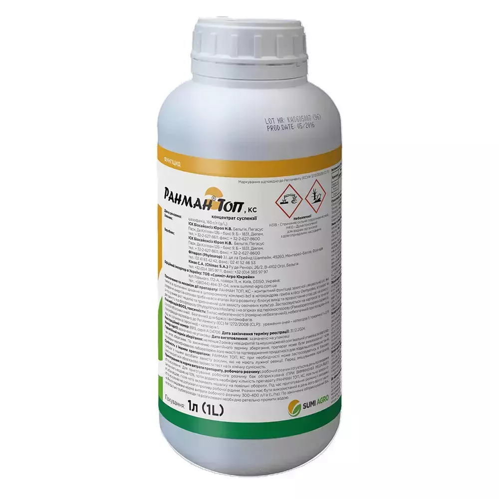 РАНМАН ТОП є контактним фунгіцидом, який призначений для захисту овочів від фітофторозу та пероноспорозу і впливає на утворення енергії в клітинах збудників грибкових хвороб. Препарат впливає на збудника на всіх етапах його розвитку: блокує вихід та проростання спор, діє на зооспори та зупиняє ріст міцелію.