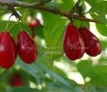Одномерные 5-граммовые плоды зимостойкого и осыпающегося сорта кизила "Елена" появляются рано – с 10 августа, и созревают всего 4 дня. К окончательному созреванию приобретают тёмно-красный цвет, но без черноты, как это присуще другим сортам кизила. Важно! В красных плодах больше витаминов.