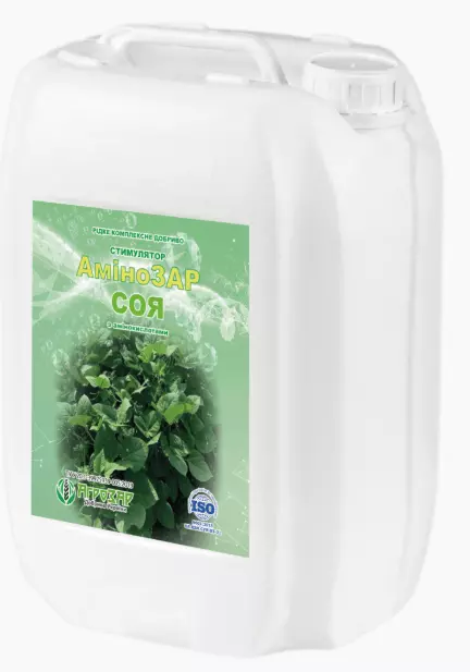 Рідке комплексне добриво «АміноЗАР-СОЯ» з потужною антистресовою і стимулюючою дією на рослини. Виготовлений на основі комплексу вільних L- амінокислот, які отримано з сировини рослинного походження. Спеціальний склад амінокислот забезпечує їх швидке проникнення в клітини рослин, стимуляцію росту і розвитку рослин за рахунок активації обмінних процесів. Роль деяких основних амінокислот, що входять до складу добрива, полягає в наступному: