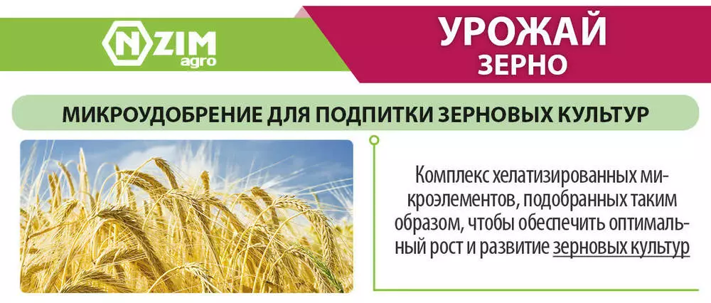 Оптимальне співвідношення мікроелементів в легкодоступній формі (у поєднанні з хелатизированными сполуками EDTA і комплексом органічних кислот) дозволяє забезпечити рослину елементами мінерального живлення в критичні періоди росту і розвитку. Це позитивно впливає на закладку і формування генеративних органів, стійкість рослин до ураження хворобами. Забезпечує підвищення врожайності і якості врожаю зернових культур.
